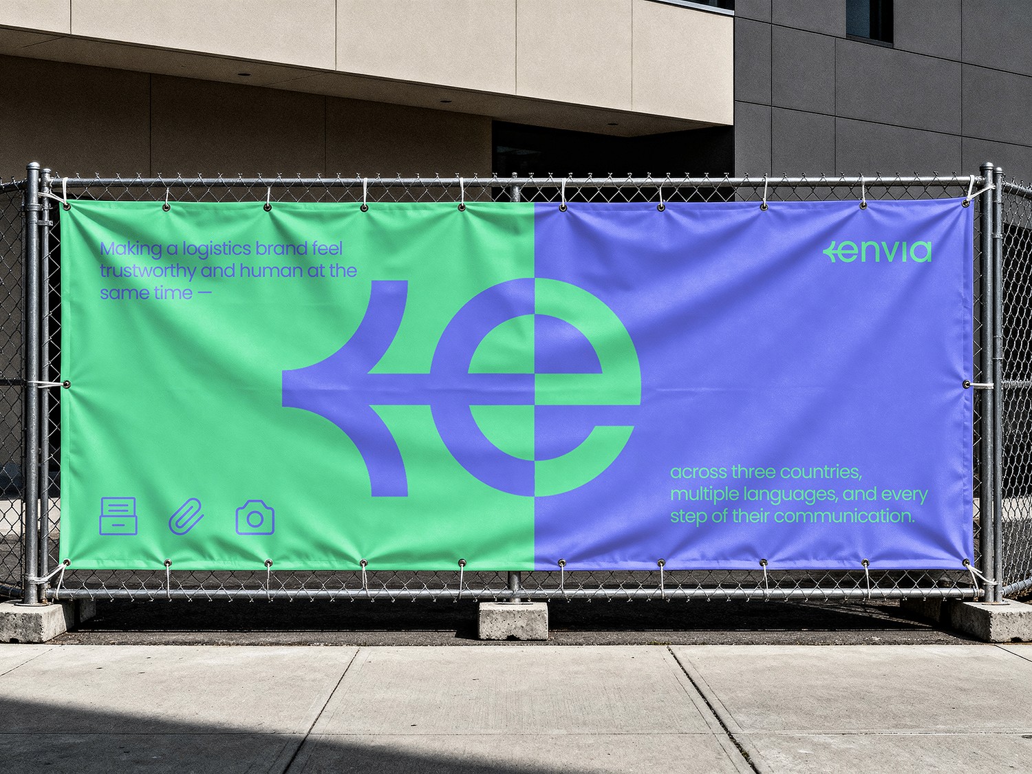 Logistics is one of those industries where design is often an afterthought — functional over everything. The challenge with Envia Group was elevating the brand without losing that essential sense of reliability. Every visual decision had to earn trust at first glance — from the structure of the logo to the tone of the illustrations. With offices in Lithuania, Belgium, and Spain, the identity also had to feel coherent across cultures and contexts, professional in every language it speaks.